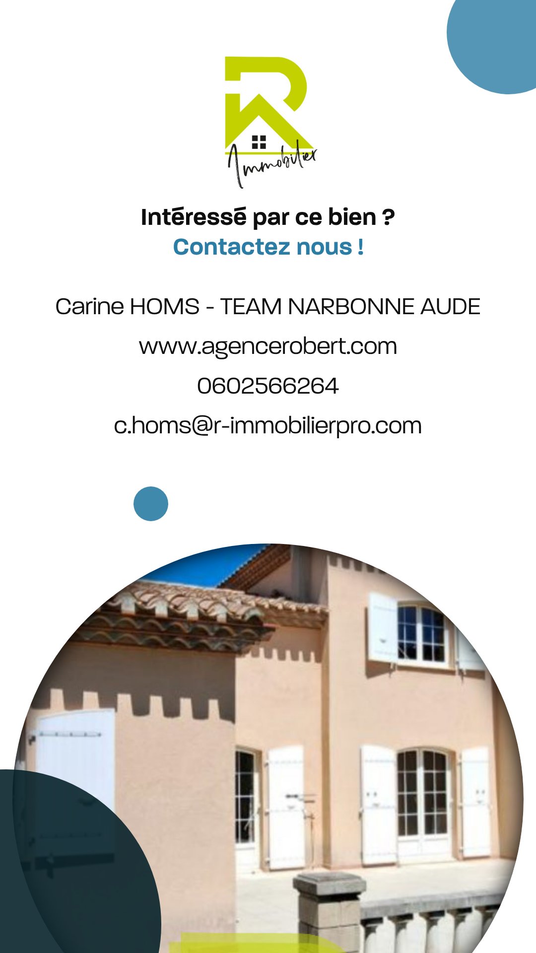 suppression et sont destinées à : R Immobilier Pro Aude (11). Conformément