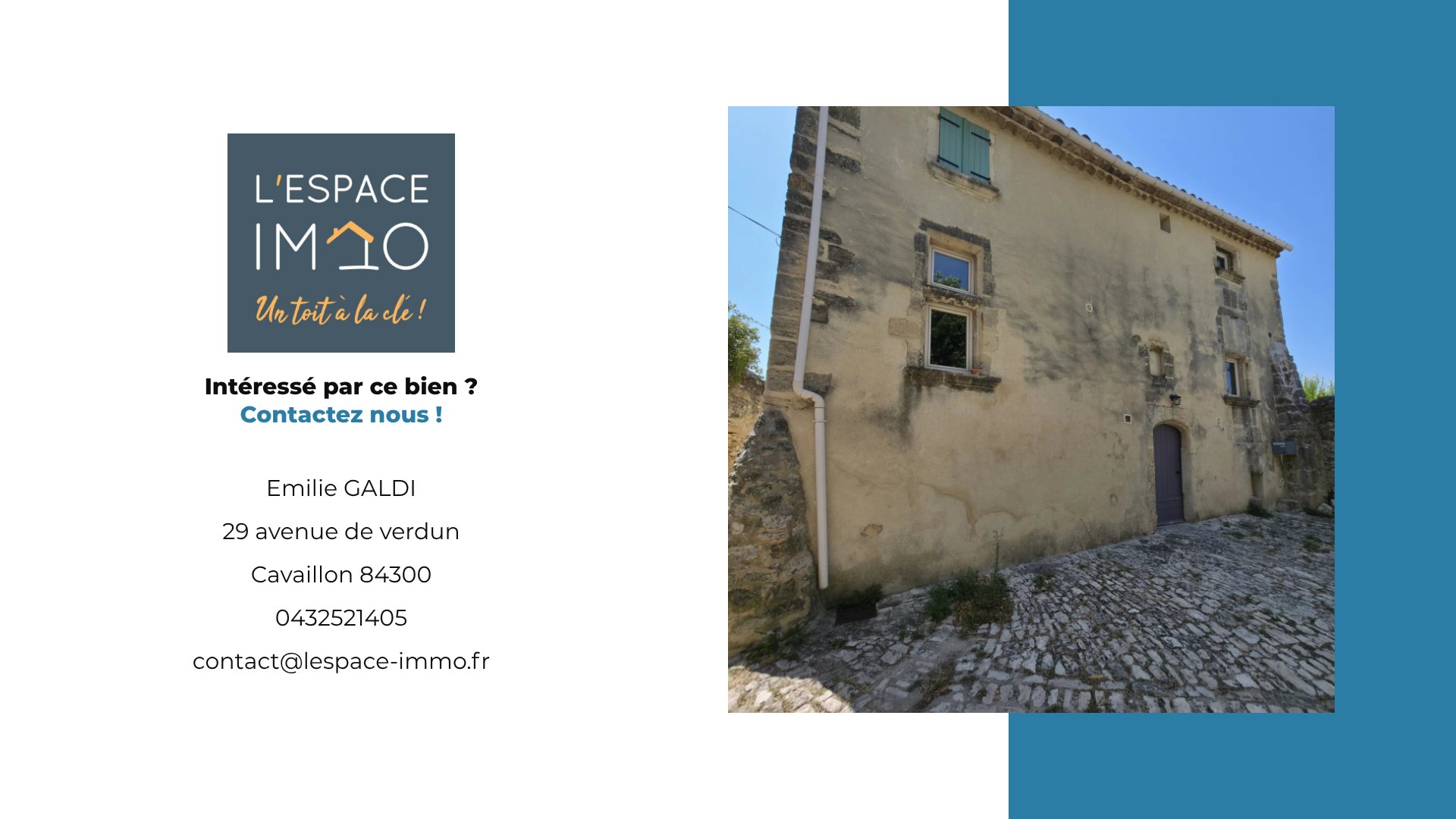 suppression et sont destinées à : L'ESPACE IMMO. Conformément