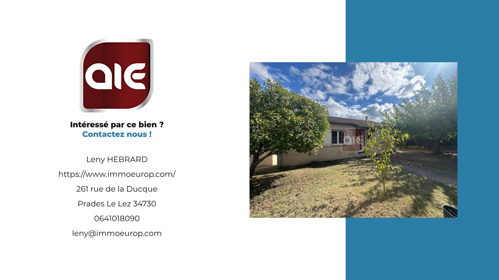 suppression et sont destinées à : AGENCE IMMOBILIERE EUROPEENNE. Conformément