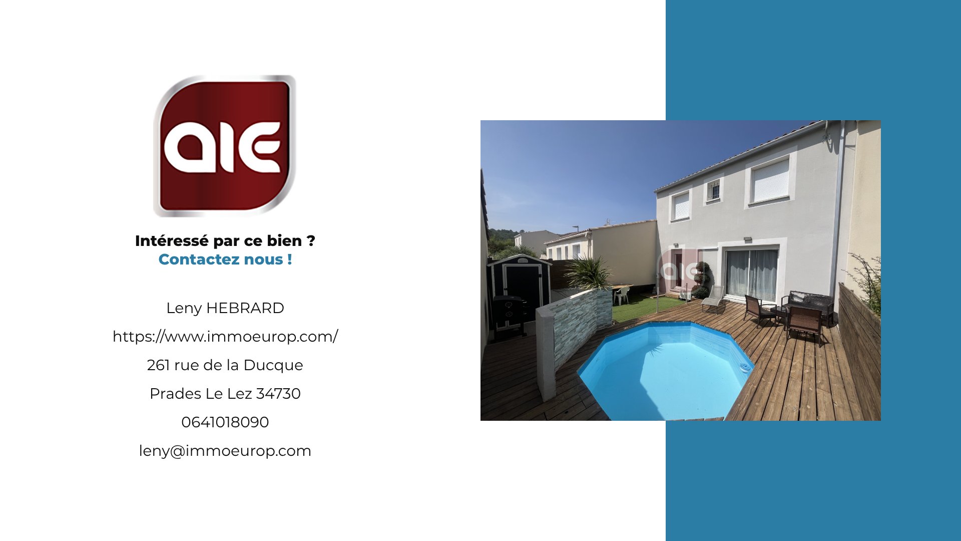 suppression et sont destinées à : AGENCE IMMOBILIERE EUROPEENNE. Conformément
