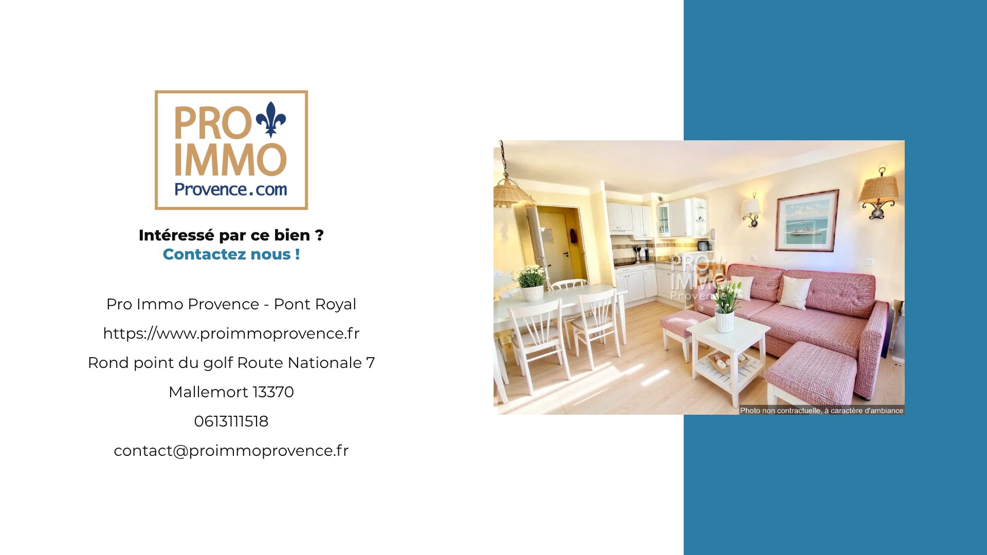 suppression et sont destinées à : Pro Immo Provence - Pont Royal. Conformément