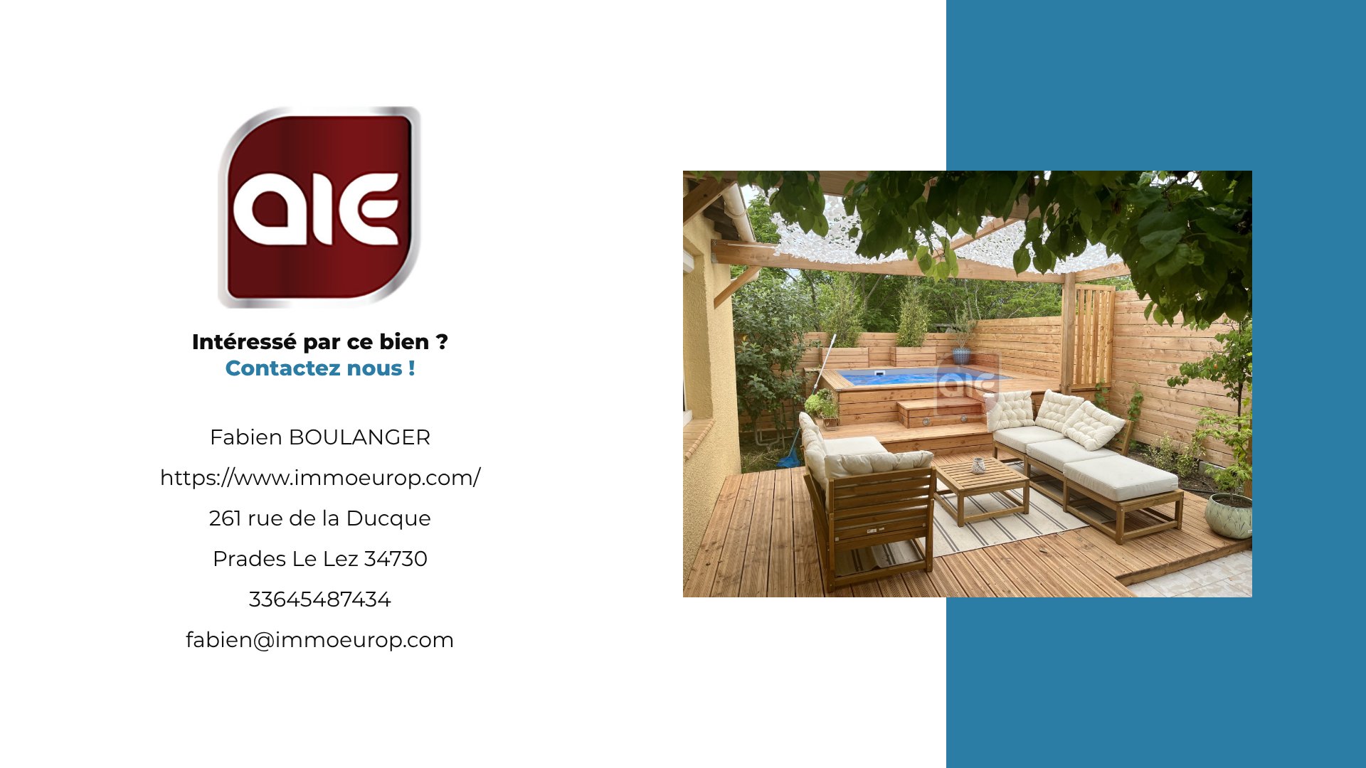 suppression et sont destinées à : AGENCE IMMOBILIERE EUROPEENNE. Conformément