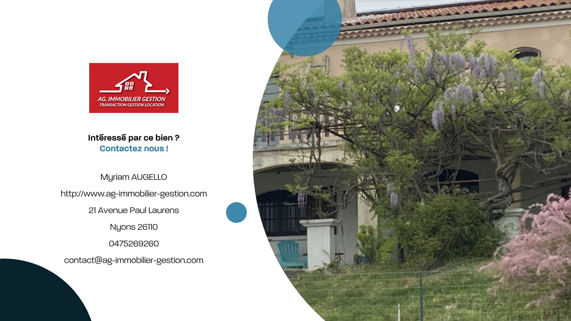suppression et sont destinées à : AG Immobilier Gestion. Conformément