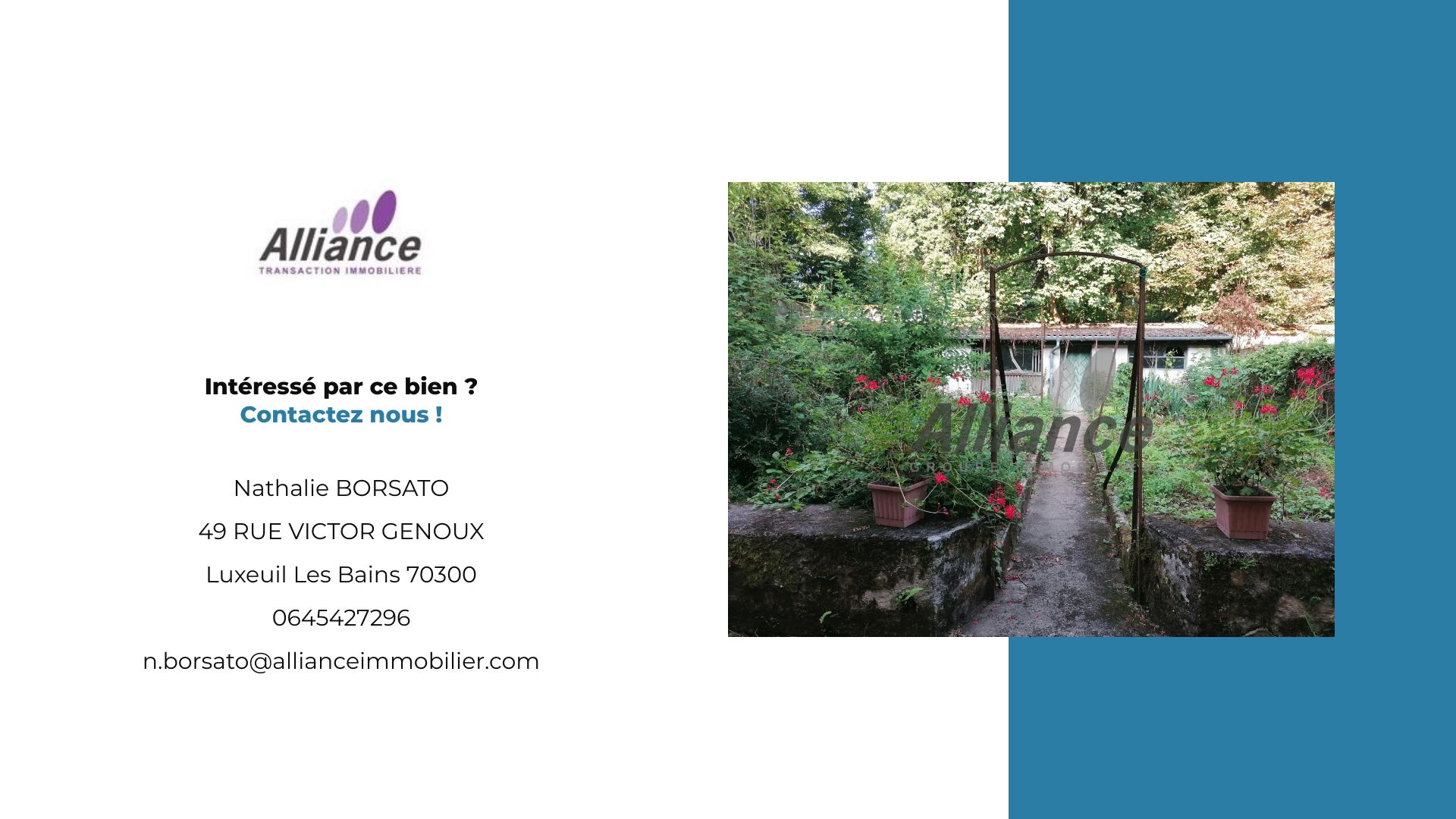 suppression et sont destinées à : ALLIANCE TRANSACTION IMMOBILIERE. Conformément