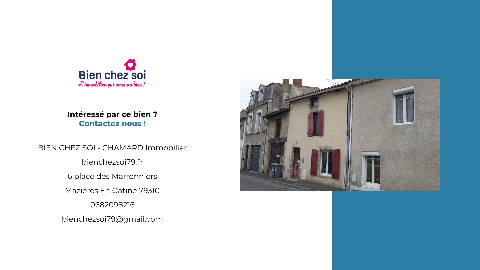 suppression et sont destinées à : BIEN CHEZ SOI - CHAMARD Immobilier. Conformément