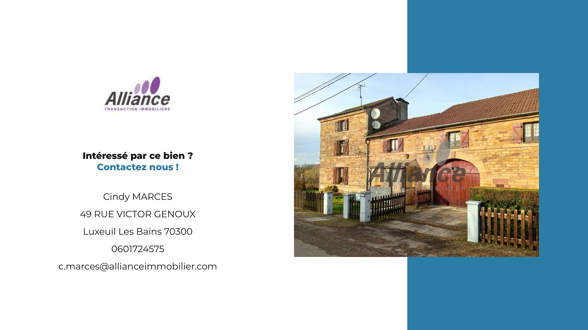 suppression et sont destinées à : ALLIANCE TRANSACTION IMMOBILIERE. Conformément