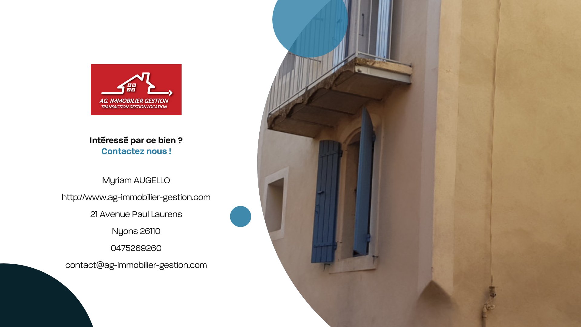 suppression et sont destinées à : AG Immobilier Gestion. Conformément