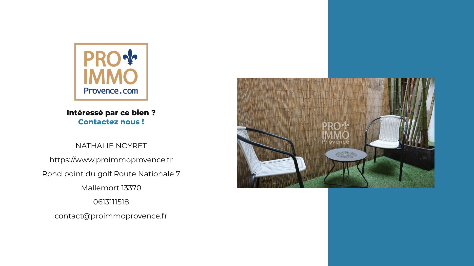 suppression et sont destinées à : Pro Immo Provence - Pont Royal. Conformément