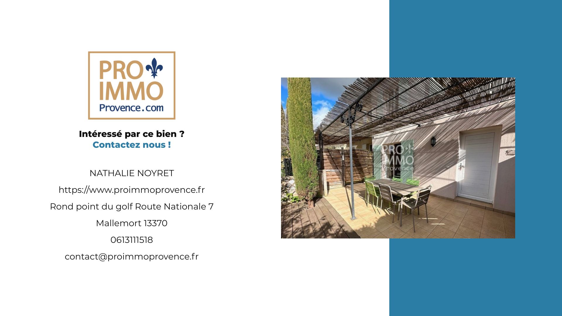 suppression et sont destinées à : Pro Immo Provence - Pont Royal. Conformément