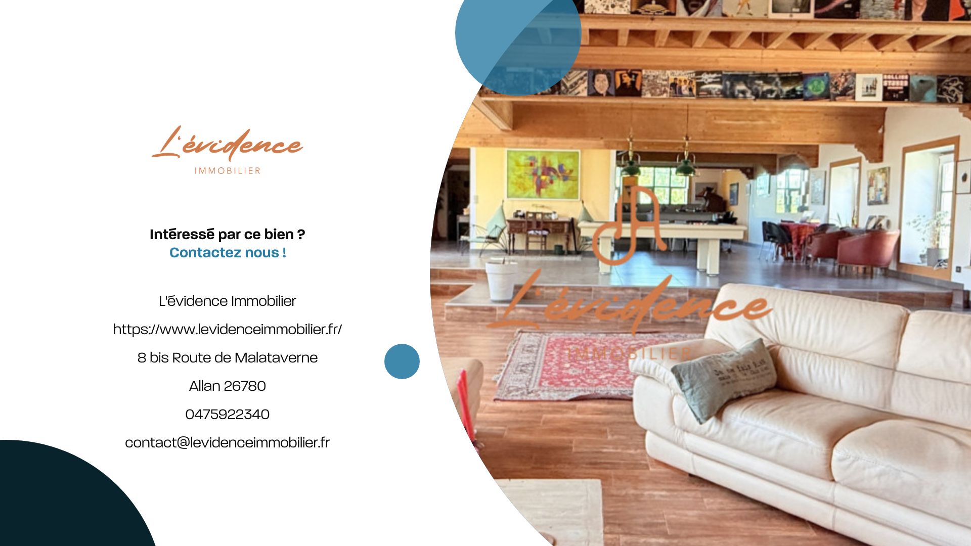 suppression et sont destinées à : L'évidence Immobilier. Conformément