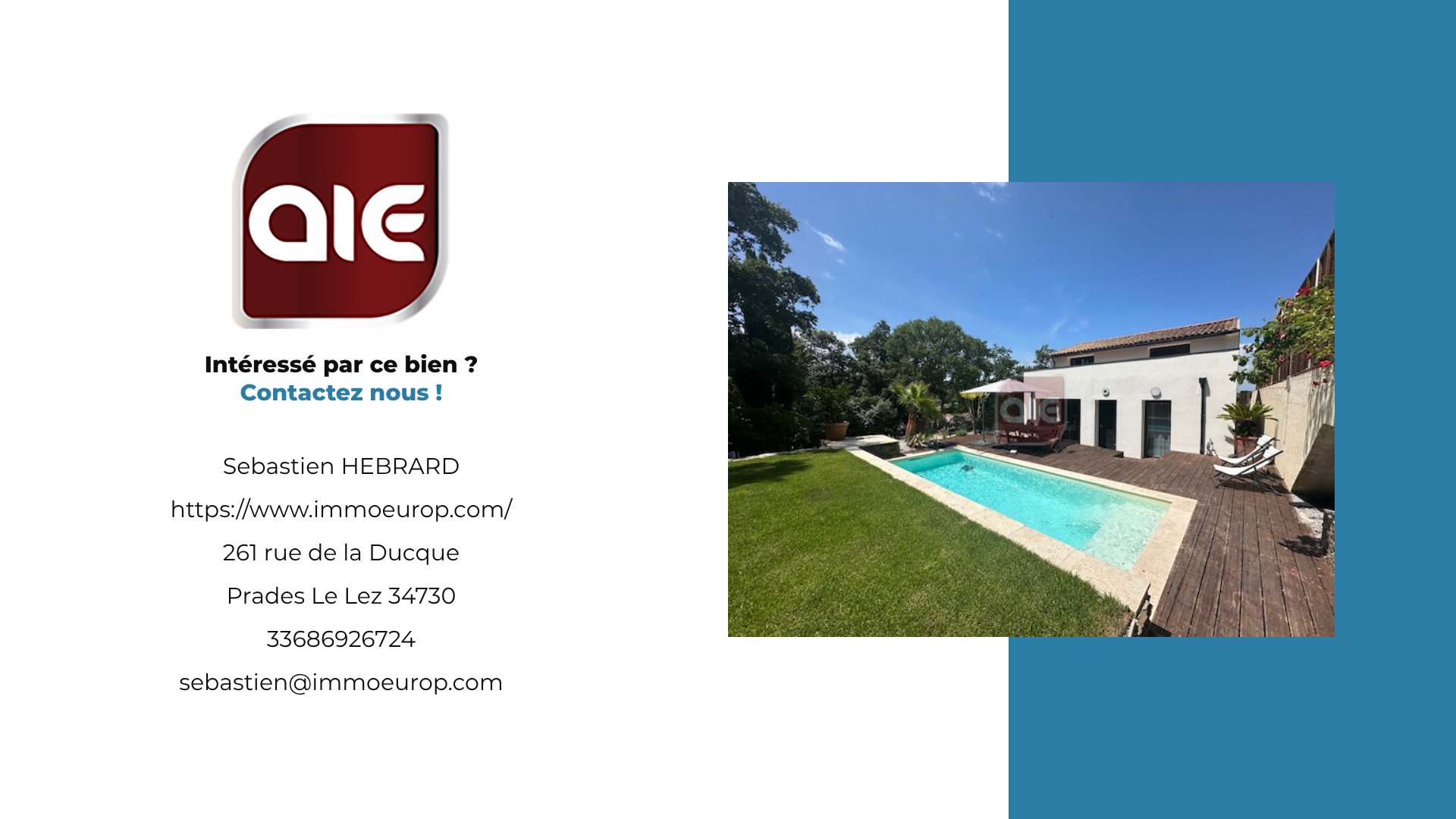 suppression et sont destinées à : AGENCE IMMOBILIERE EUROPEENNE. Conformément