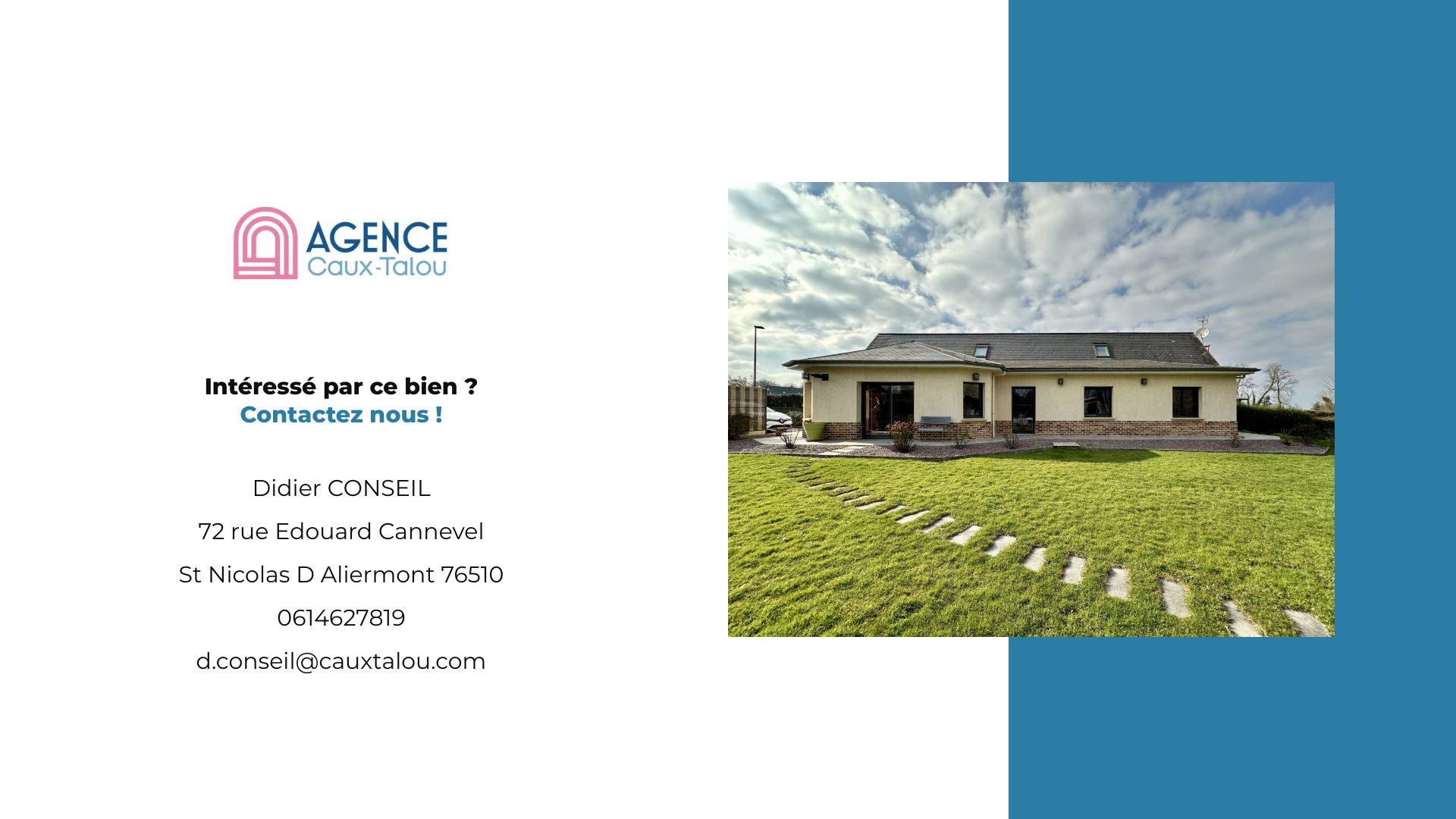 suppression et sont destinées à : AGENCE CAUX TALOU. Conformément