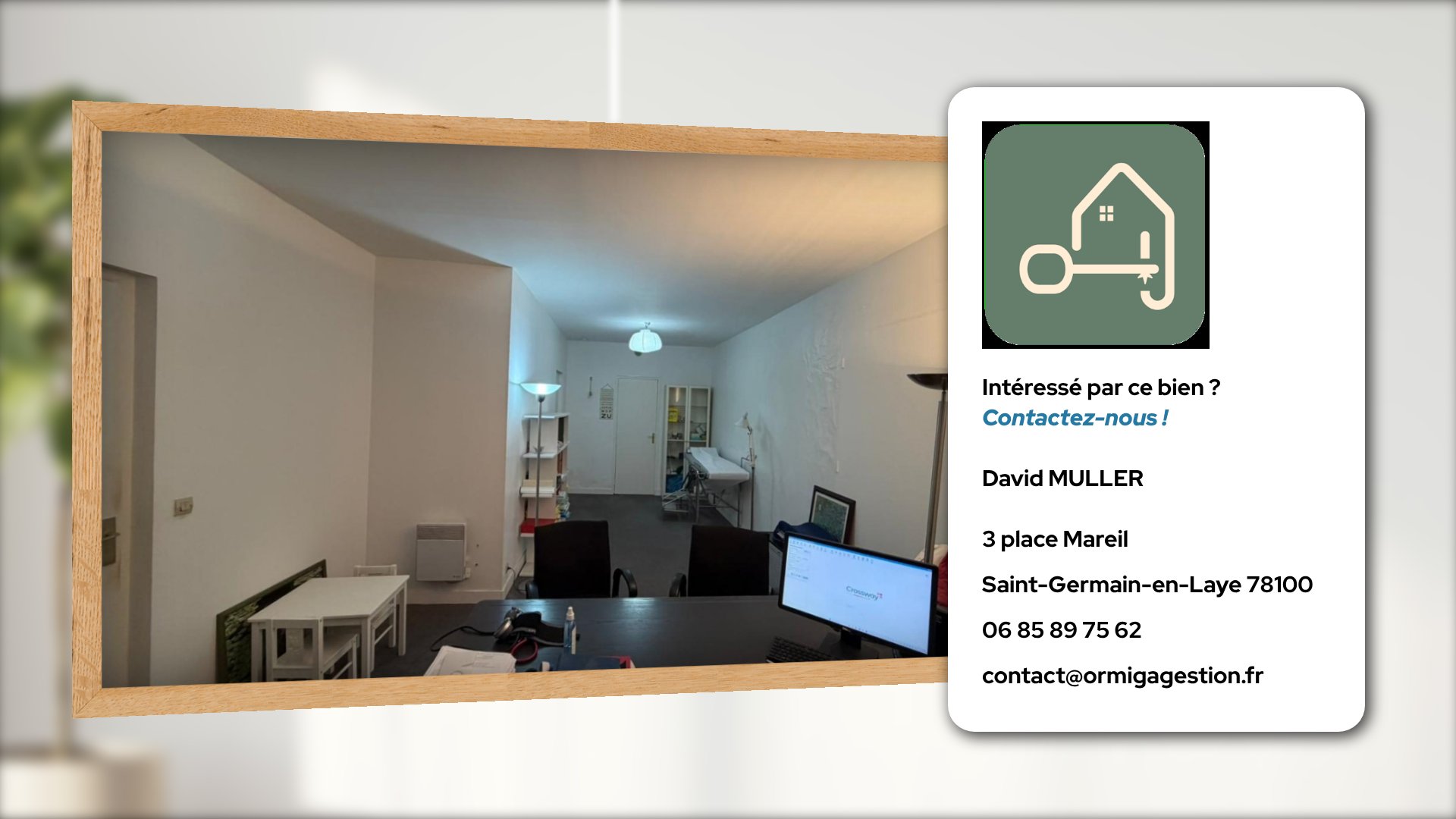 EN EXCLUSIVITÉ – LOCAL PROFESSIONNEL AU COEUR DU CENTRE HISTORIQUEIdéalement situé en rez-de-chaussée d'un bel immeuble ancien au cachet préservé, avec accès indépendant, ce local de type 2 pièces offre un cadre de travail privilégié au sein d'un environnement dynamique et recherché.Emplacement stratégiqueÀ deux pas du Château de Saint-Germain-en-Laye, en plein coeur du centre-ville historique de Saint-Germain-en-Laye, le bien bénéficie d'une excellente visibilité et d'un fort passage.Commerces, restaurants et services sont à proximité immédiate.La gare RER A, accessible en quelques minutes à pied, permet une connexion rapide vers Paris et le quartier d'affaires de La Défense.Configuration fonctionnelleLe local se compose :D'un espace principal lumineux, idéal pour accueil ou bureauD'un second espace pouvant faire office de bureau indépendant ou salle de consultationD'une cuisine aménagéeD'une salle d'eauUsage exclusivement professionnel : parfaitement adapté à une profession libérale, un cabinet de conseil, une activité paramédicale ou toute activité tertiaire recherchant une adresse de qualité en centre-ville.Rez-de-chaussée avec accès indépendantCoeur de villeProximité immédiate commerces et transportsEnvironnement premiumUne opportunité rare pour implanter ou développer votre activité dans un secteur à forte attractivité.Emplacement idéal - Coeur de ville - Proche de tous commerces et transports - LumineuxHonoraires inclus de 5.25% à la charge de l'acquéreur. Prix hors honoraires 312 600 €. Dans une copropriété de 30 lots. Aucune procédure n'est en cours. Classe énergie F, Classe climat C. Les informations sur les risques auxquels ce bien est exposé sont disponibles sur le site Géorisques : georisques.gouv.fr.