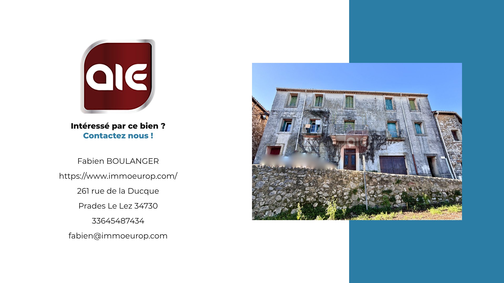 suppression et sont destinées à : AGENCE IMMOBILIERE EUROPEENNE. Conformément